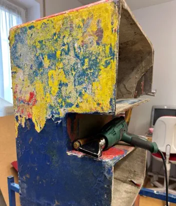 und der Treppe. Farbe runterschaben, schleifen …